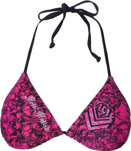 Metal Mulisha Trials Shirred sliding triangle bikini halter. Allover Metal Mulisha artwork. Center ruching. Contrast Metal Mulisha logo with tonal sequin details. Strings tie at back of neck and at back. 80% nylon/20% elastine. Machine wash. Imported.