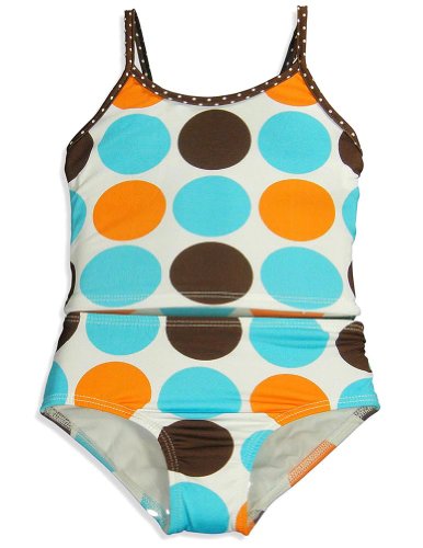 two piece swim suits 405 South by Anita G- Girls 2 Piece Cool Dot Tankini Swim Suit, Blue, Orange, Brown (Size 8)